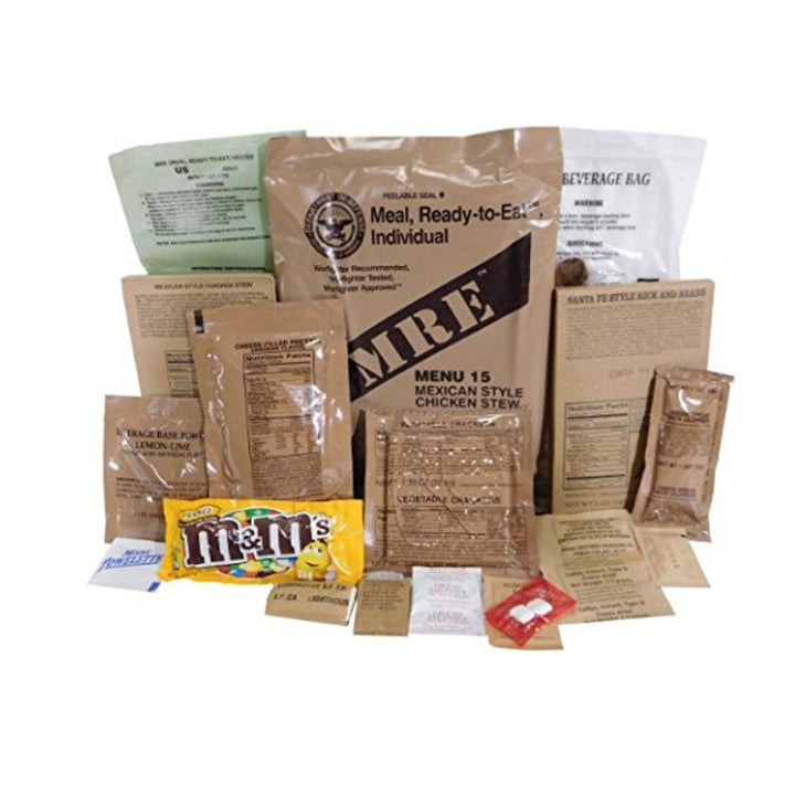 Includes: Cherry Cobbler, Cookie, Jalapeno Cheese Spread, Italian Breadsticks, Beef Sticks, Orange Carbohydrate Drink.